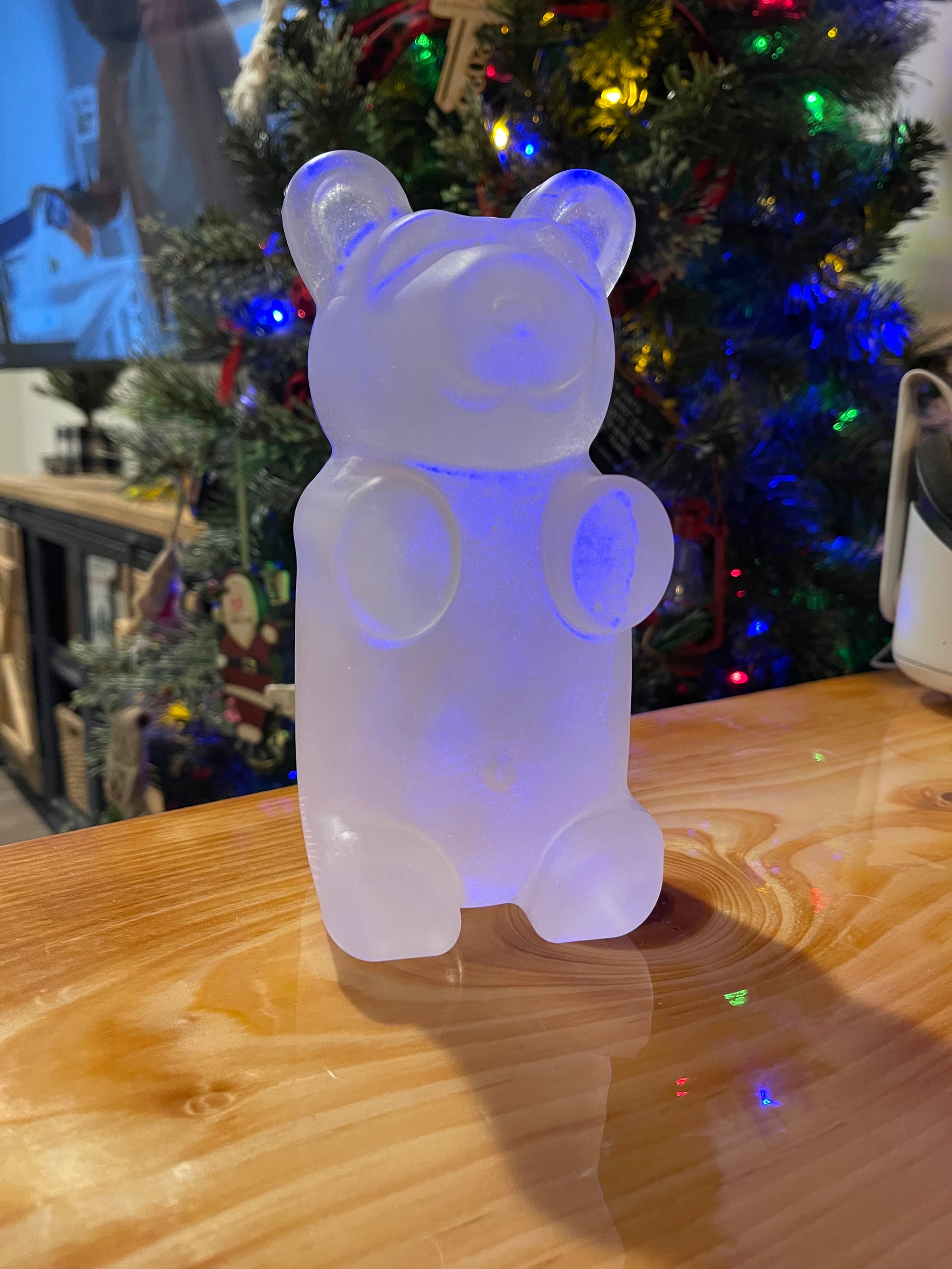 Resin Gummy Bear Night Light: A playful yet sophisticated night light, this resin gummy bear brings a touch of whimsy to any space. Perfect as a conversation starter or a statement piece, it combines vibrant colors with a sleek, modern finish.